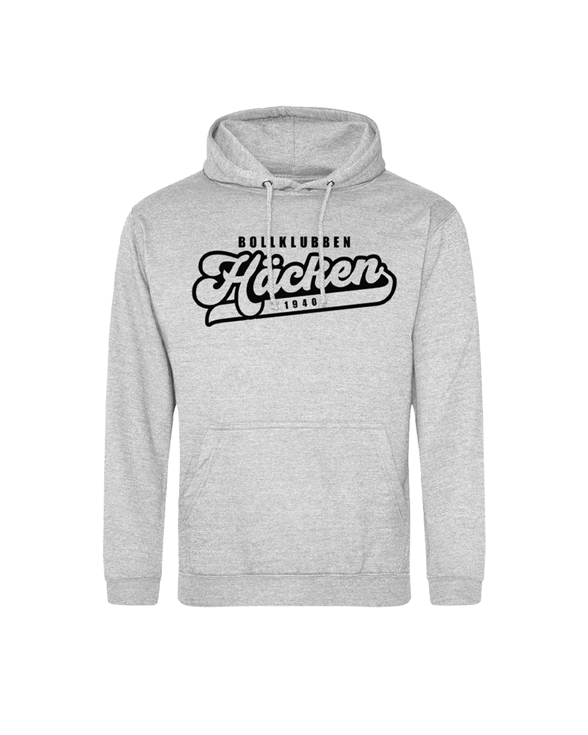 Gråmelerad hoodie med “Bollklubben Häcken” på bröstet. Matcha med byxor eller bär ensam – en bekväm look med klubblojalitet året runt.