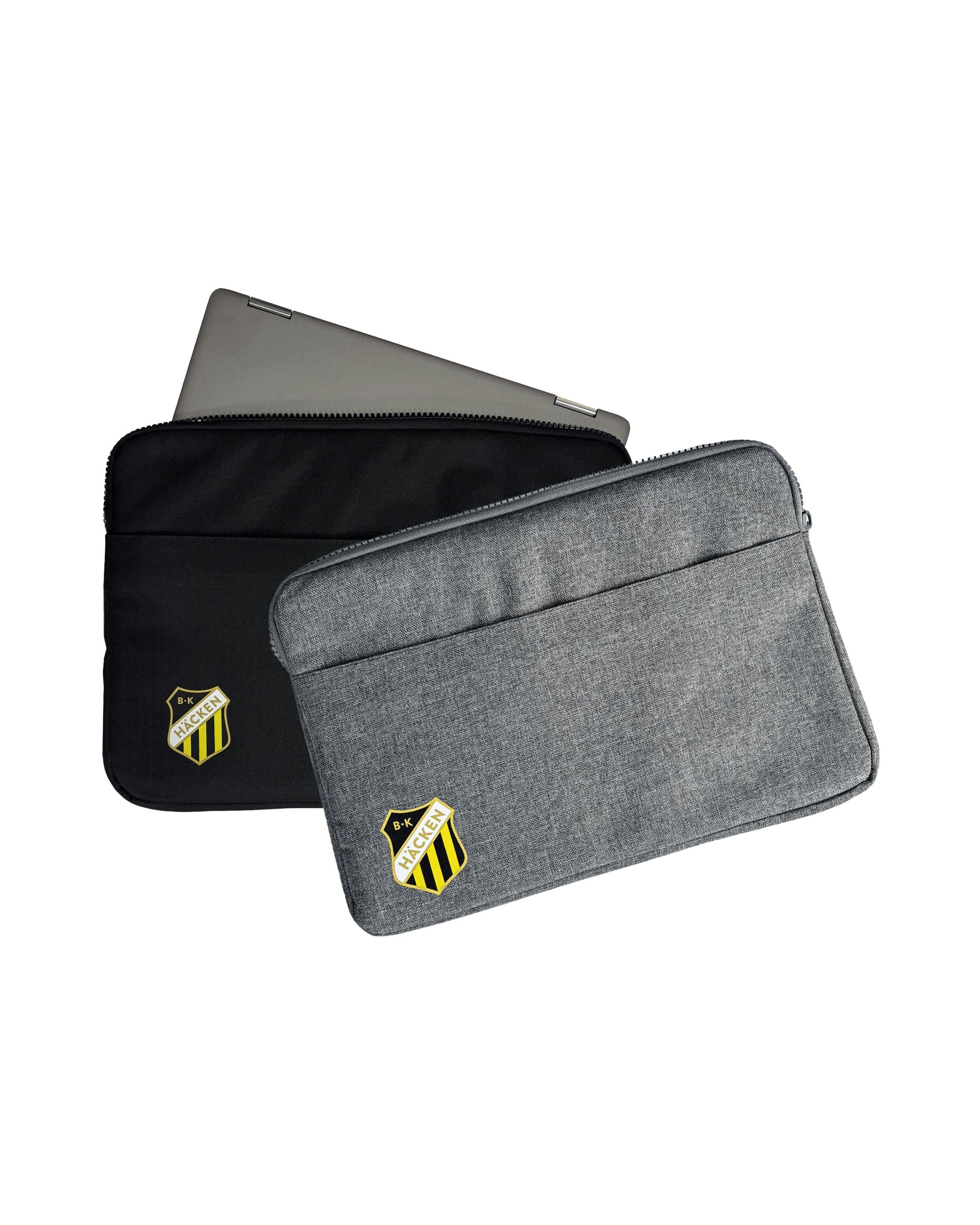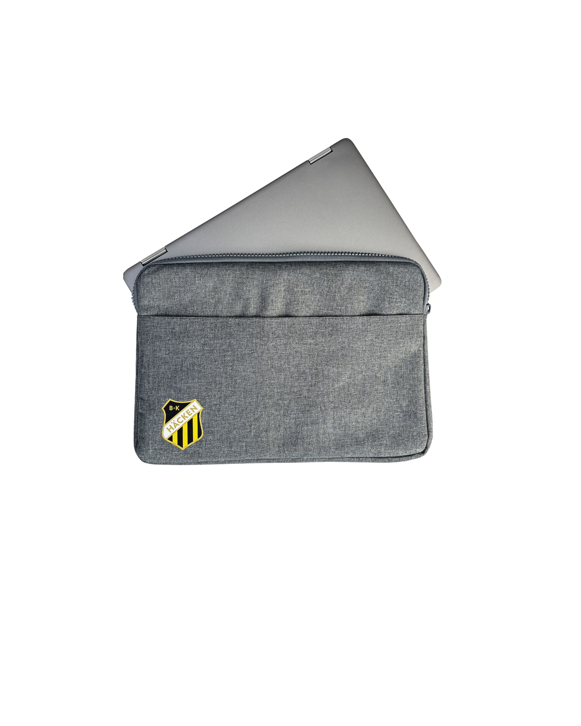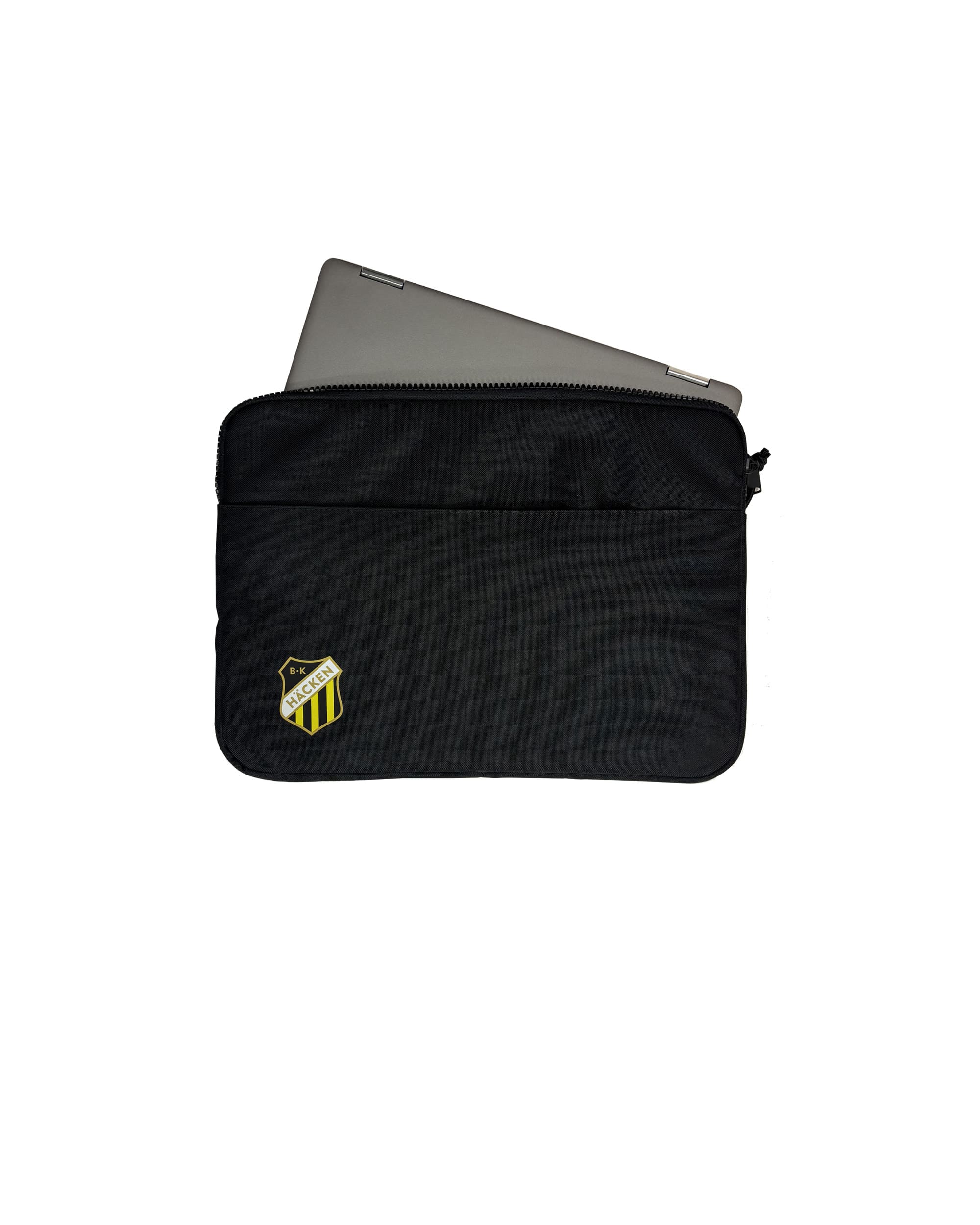 Fodral för laptops upp till 13 tum, tryckt med klubbmärket. Ficka fram med plats för laddaren.